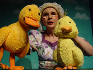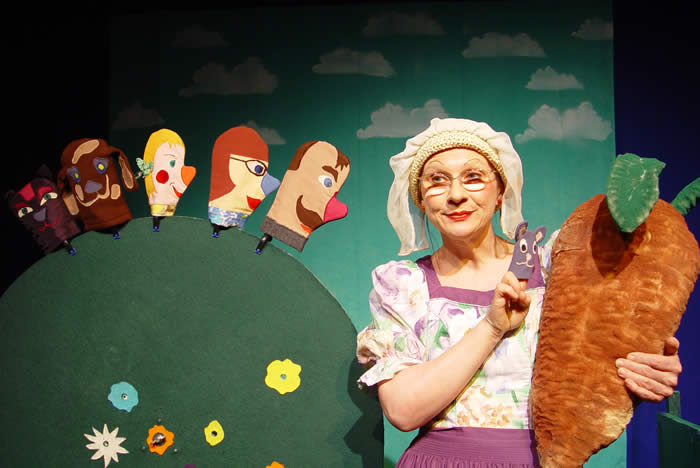 Hildegard zeigt ihre selbstgenähten Topflappenhandschuhe und spielt damit "DIE GESCHICHTE VOM RÜBCHEN" Denn nur mit Hilfe der Maus kann die Rübe geerntet werden. |